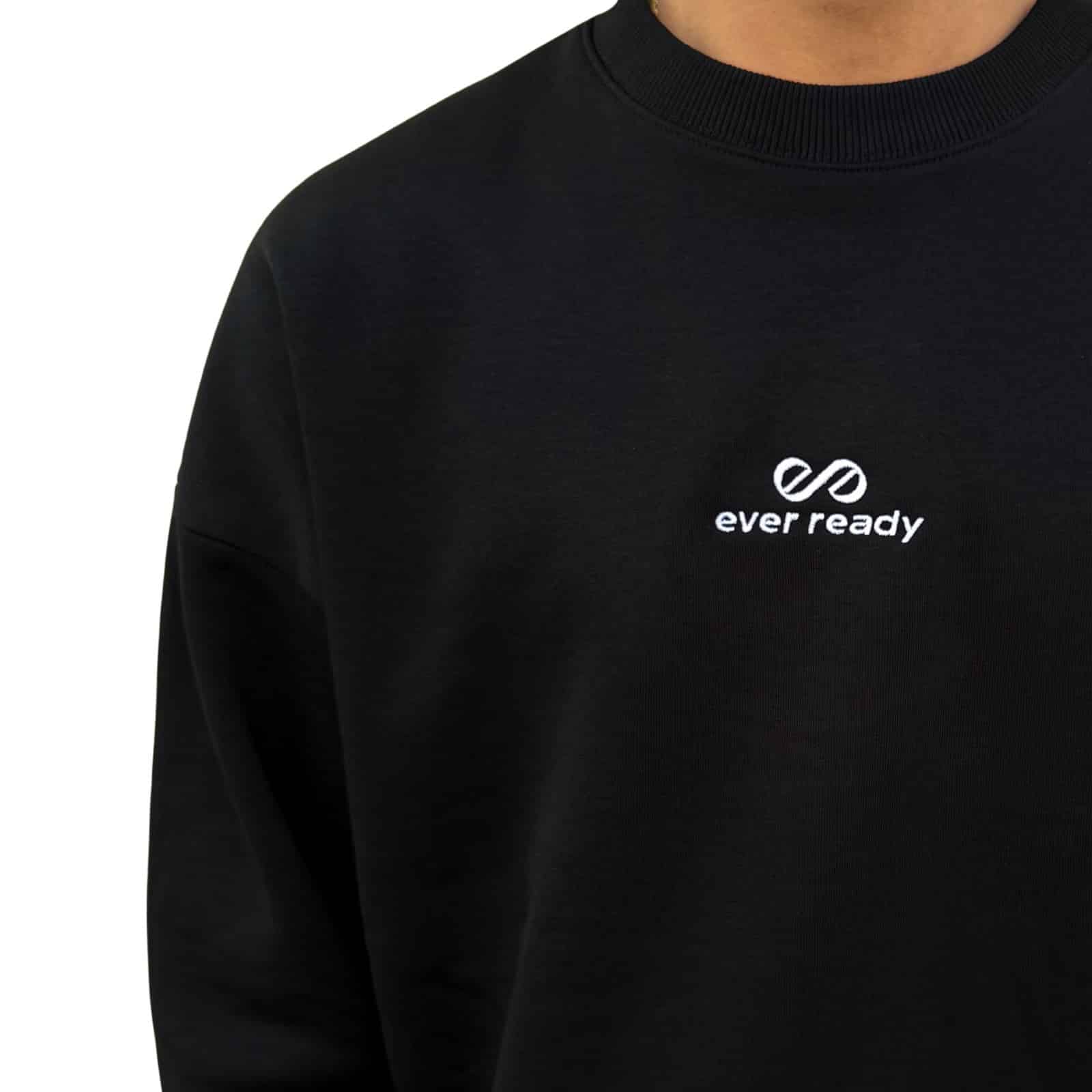 De Ever Ready crewneck is een comfortabele unisex trui. De zwarte trui heeft een subtiel Ever Ready-logo op de voorkant en is gemaakt van 85% katoen en 15% polyester. Dankzij de zachte binnenkant en de relaxed fit voelt hij prettig aan. De ronde hals, lange mouwen en ribboordafwerking zorgen voor een klassieke look en een perfecte pasvorm.
