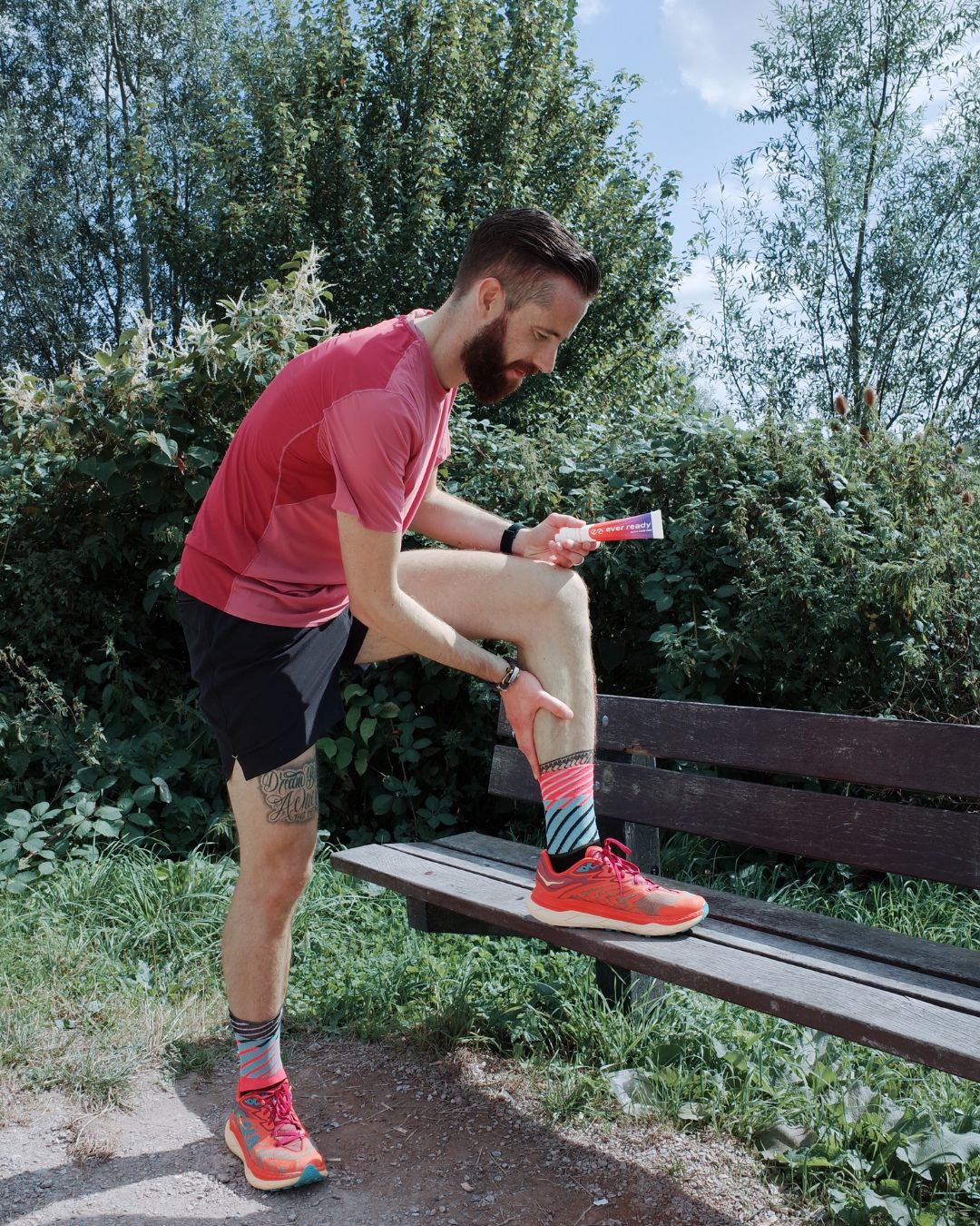 Masseer de warmte crème goed in, ongeveer 5 minuten voordat je gaat bewegen.